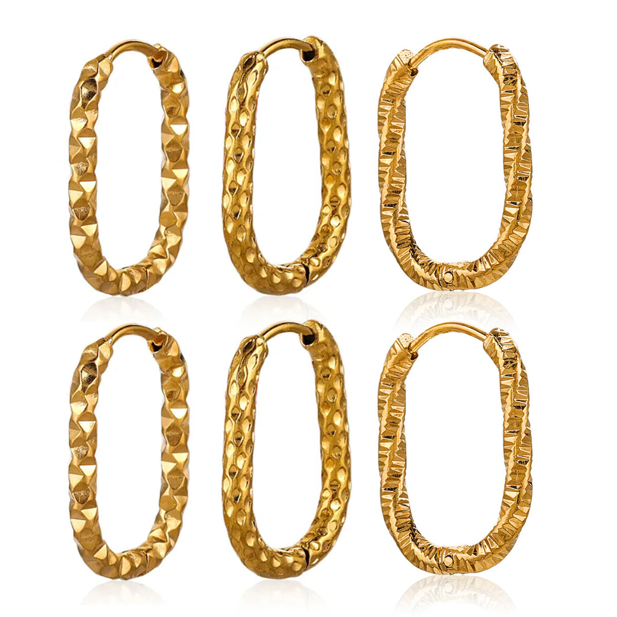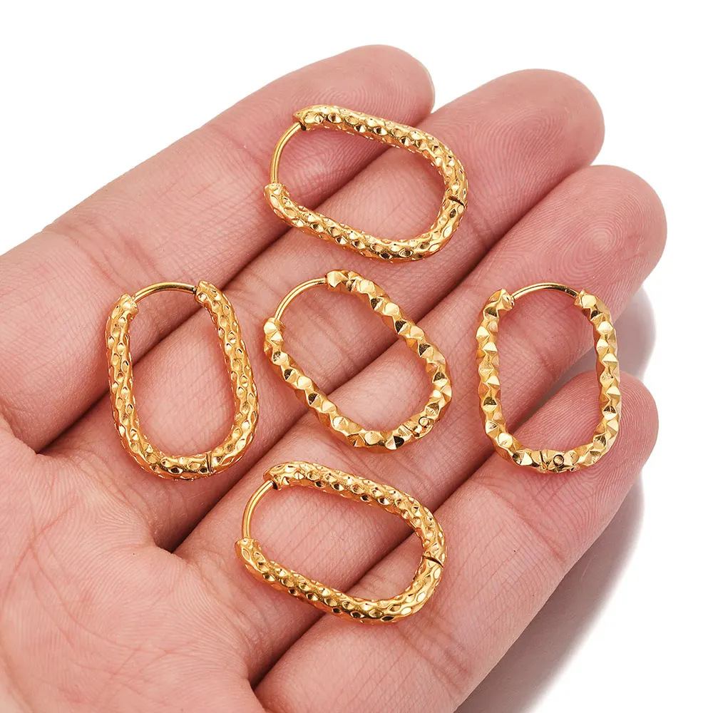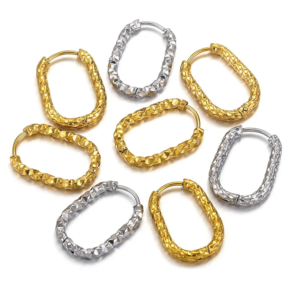 Stainless Steel Starburst-pattern Rectangular Ear Clips With A Polished Finish